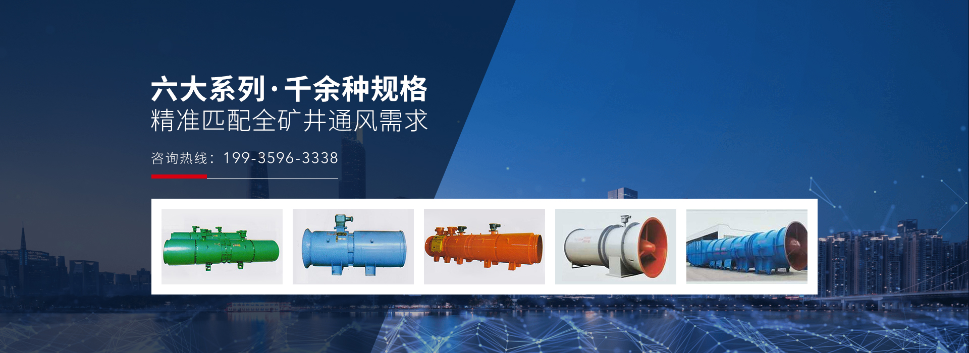 公司现有矿用轴流式FBCZ型主通风机、FBCDZ型对旋主通风机、FBD型压入式对旋局部通风机、FBD型压入式多级对旋局部通风机、FBS压入式双级局部通风机、FBDS压入式双速对旋局部通风机等六大系列100余种型号、6000余种规格的产品,能满足矿井通风需求。“安运”风机投入市场20多年来已遍布我国各地,与国内各大矿业集团及地方重点矿区都建立了良好的合作关系,深受广大用户和社会各界的好评。