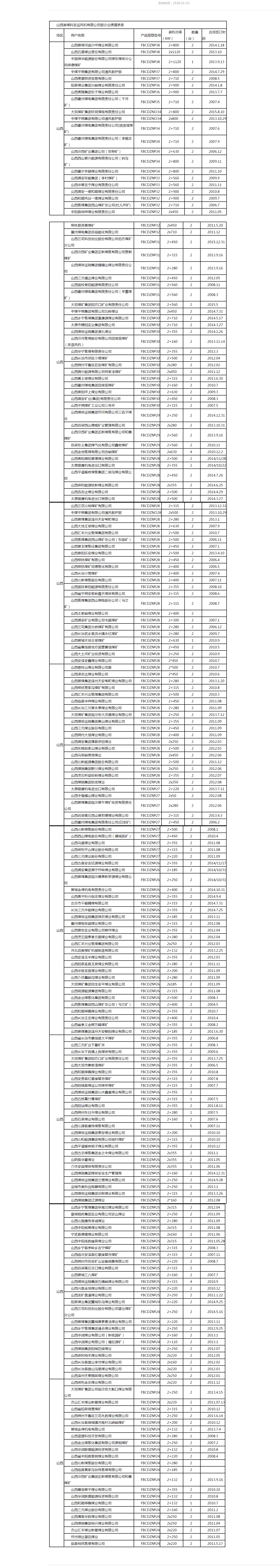 山西渝煤科安运风机有限公司部分业绩摘录表(一)